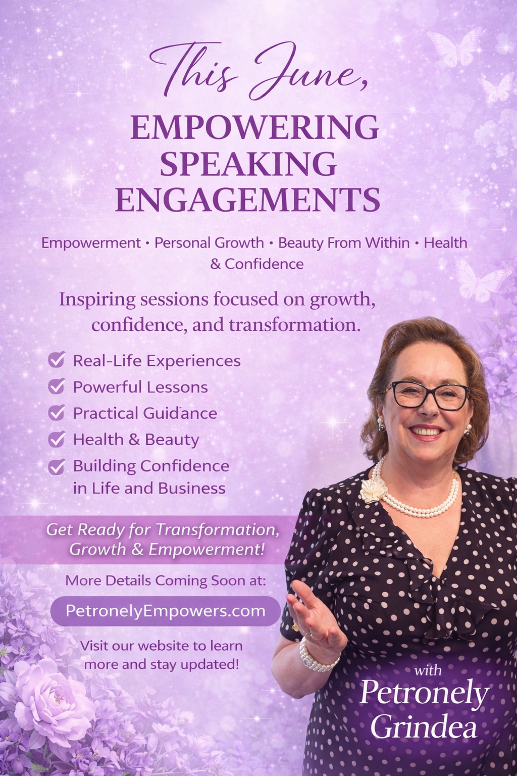 This June, join us for a series of inspiring speaking engagements focused on empowerment, personal growth, beauty from within, health, and building confidence in both life and business. These sessions will share real-life experiences, powerful lessons, and practical guidance to help you grow, overcome challenges, and step into your full potential. Get ready for honest conversations, motivation, and meaningful transformation. More details and registration information will be available soon on our website.